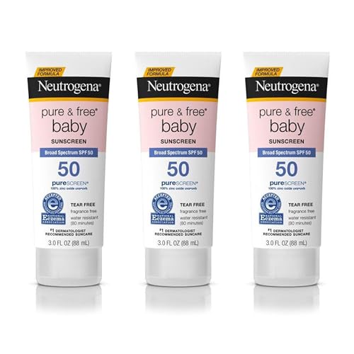 Neutrogena Pure & Free Baby Mineral Sunscreen Lotion with Broad Spectrum SPF 50 & Zinc Oxide, Water-Resistant, Hypoallergenic & Tear-Free Baby Sunscreen, 3 fl. oz, 3 pk