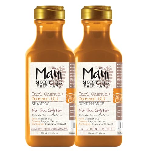 Maui Moisture Curl Quench + Coconut Oil Shampoo + Conditioner to Hydrate and Detangle Tight Curly Hair, Softening Shampoo, Vegan, Silicone & Paraben-Free, 13 Fl Oz