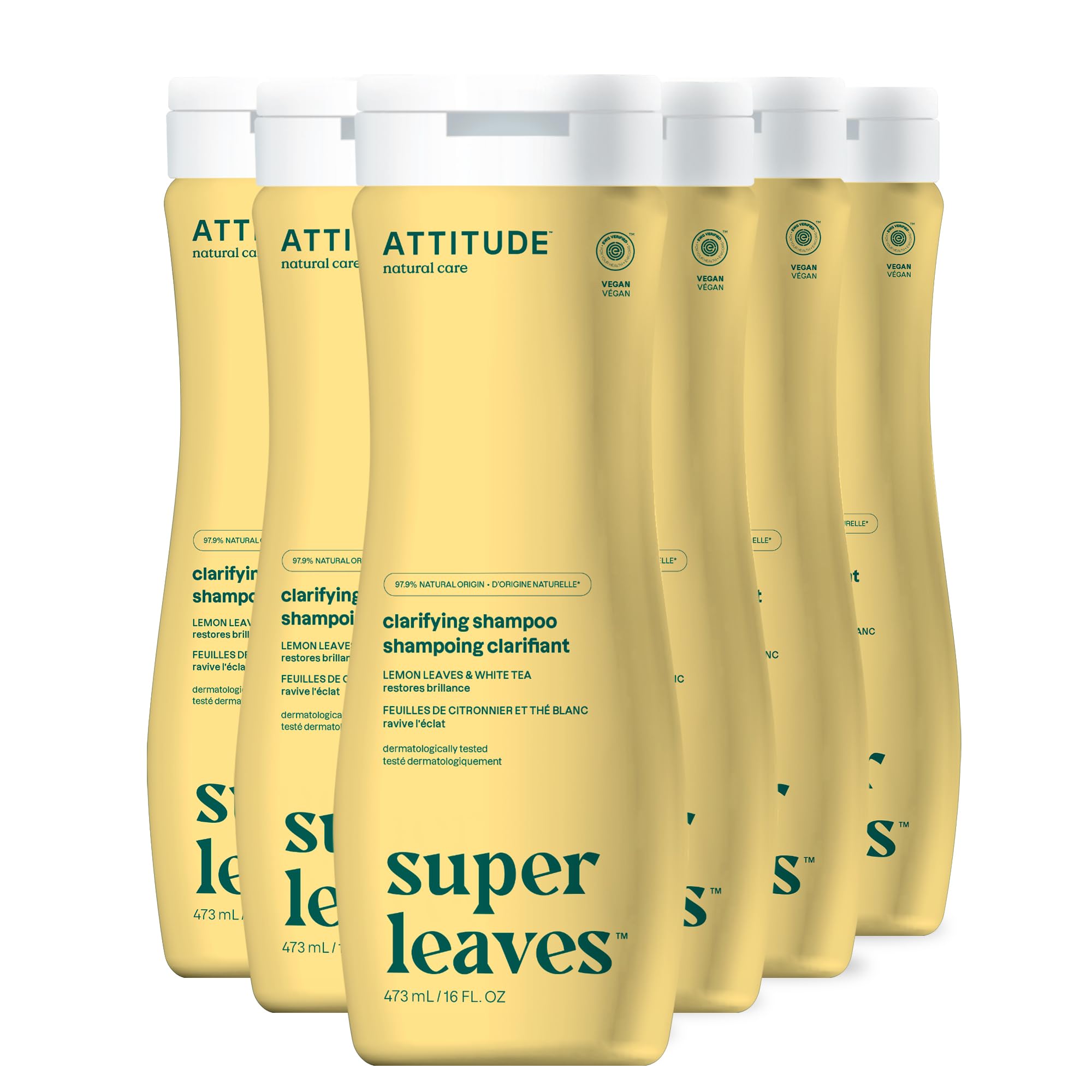 ATTITUDE Clarifying Hair Shampoo, EWG Verified, Restores Shine, Naturally Derived Ingredients, Vegan and Plant Based, Lemon Leaves and White Tea, 16 Fl Oz (Pack of 6)
