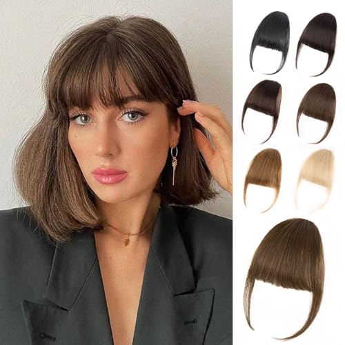 EINAEY Clip in Bangs, 100% Real Human Hair Medium Brown Fake Bangs Hairpieces for Women Bangs Hair Clip Fringe with Temples Wispy Bangs Clip in Hair Extensions for Daily Wear