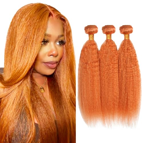30 30 30 inch Ginger Bundles 350 Yaki Bundle Ginger Kinky Straight 3 Bundles 350 Ginger Human Hair Bundle No Tangle 300g
