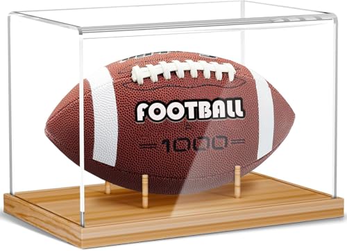 KKU Football Display Case, Acrylic Football Case with Wooden Base One-Piece Design, Autographed Football Holder for Football Fans & Collectors, Sports Collectibles, No Assembly Required - Original