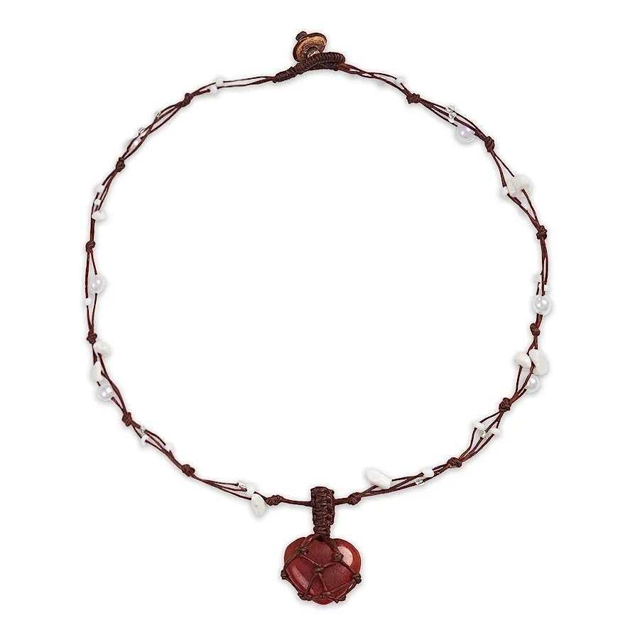ELE-WOVEN Red Agate Heart Pendant Necklace for Women - Macrame Healing Crystal Necklace for Women - Chakras Stone Hypoallergenic Choker 16 inch