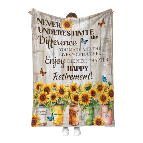 Hohoto Retirement Gift for Woman Sunflower Floral Blanket Retired Gift for Men Mom Dad Friends Coworkers Teachers Doctors Nurses Farewell Going Away Goodbye Gifts Happy Retirement Decor 50"x60"