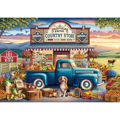 Rocorose 500 Pieces Puzzle for Adults, Countryside Landscape Puzzle Challenging Country Store Jigsaw Puzzles Holiday Party Gift Farm Home Decor Perfect for Game Nights