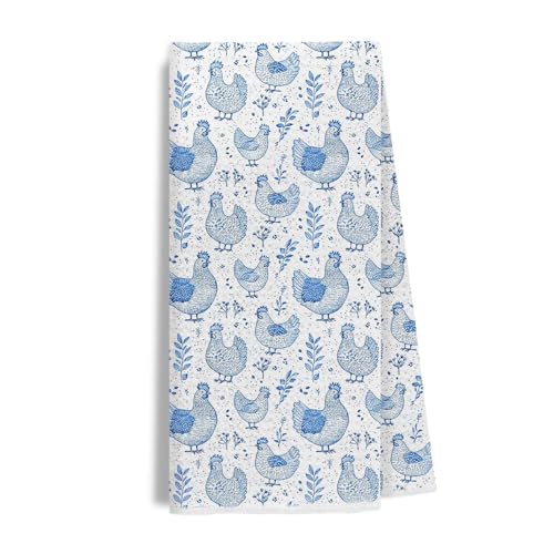 Evcprz Blue and White Chicken Kitchen Towels, Gifts for Chicken Lovers, Chickens Lady Owner Gifts Dish Tea Towel for Kitchen, Farmhouse Rooster Hen Decorative Hand Towels for Bathroom, 16x24 Inches