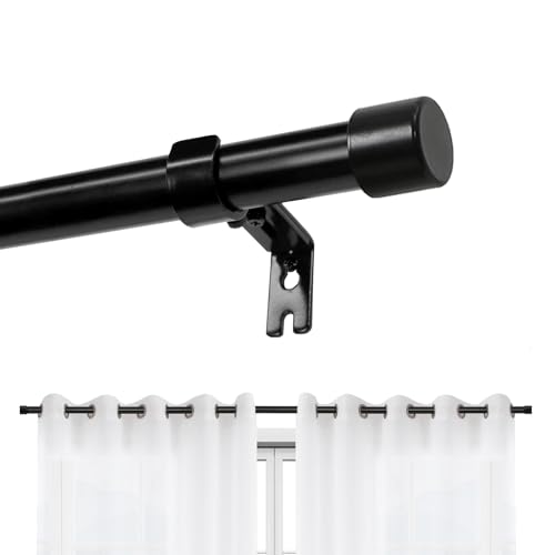 Joydeco Adjustable Black Curtain Rods Set with Brackets for Windows 32 to 144 Decorative Window Rods with Aluminium End Cap for Farmhouse Kitchen Bedroom Living Room (Black,32"-144")