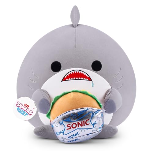 Snackles Series 2 16-inch by ZURU Cuddly Squishy Comfort 16-inch Plush with Licensed Snack Brand Accessory (Shark&Sonic Burger)