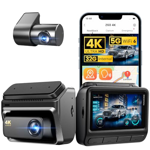 DDPAI 4K Dash Cam Front and Rear, 2160P+1080P Dash Camera for Cars, up to 15MB/s 5GHz WiFi6 Dashcam with 32G eMMC, GPS, Night Vision, 3" IPS WDR ADAS 20 Days Parking Mode Loop Recording G-Sensor, Z60
