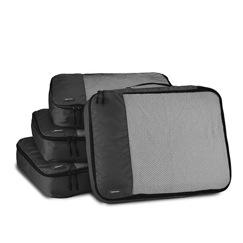 Amazon Basics Large Packing Cubes for Travel, Packing Organizers, 4-Piece-Set With Double Zipper Pulls and Mesh Top Panel, 100% Durable Polyester, Black, 17.5"L x 12.8"W x 3.3"H