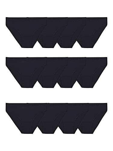 Fruit of the Loom Women's Eversoft Cotton Bikini Underwear, Tag Free & Breathable, Stretch, Black, 8 (Pack of 12)
