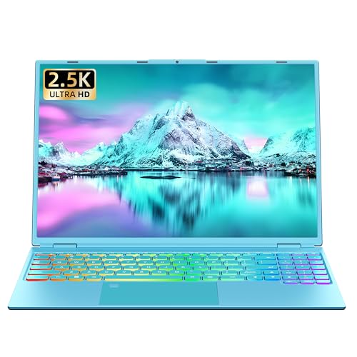 Rumtuk 16" Blue Laptop,Ultra-Narrow bezels 2.5K QHD(2560x1600) IPS,in tel N95 (Up to 3.4Ghz),16G RAM 256G SSD, Color Backlit KB, Fingerprint,Type-C/HDMI/WiFi/HDD Expand, Win 11 PC for Business Study