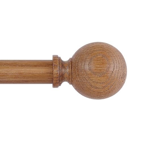 HTZON Brown Wood Grain Ball Adjustable Curtain Rods, 36-88" Heavy Duty, Farmhouse Rustic Single Window Curtain Rods, Indoor/Outdoor, Iron with Imitation Wood Grain Finish