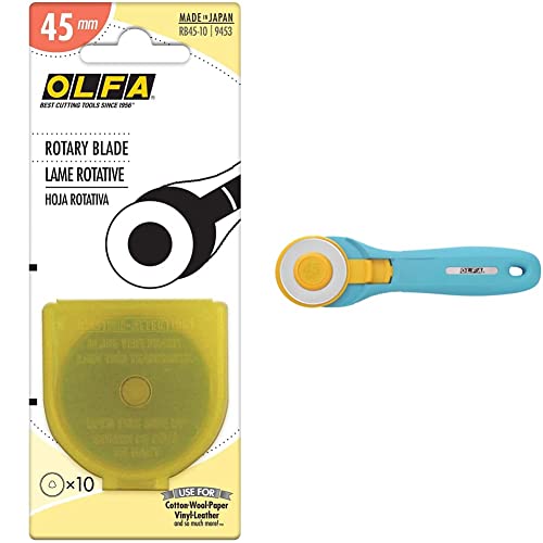 Blade - 45 mm Rotary cutter (10 pack) and OLFA 45mm Quick-Change Rotary Cutter (RTY-2/C) - Rotary Fabric Cutter