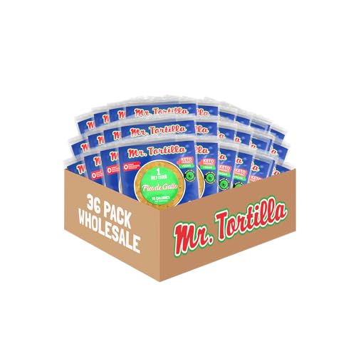 Mr. Tortilla Low Carb Keto Soft Taco Shells, Vegan Healthy Snacks & Bread Alternative, 1 Net Carb 15 Calories, Delicious Small Batch Kosher Wraps - (Pico de Gallo 36 Pack Wholesale)