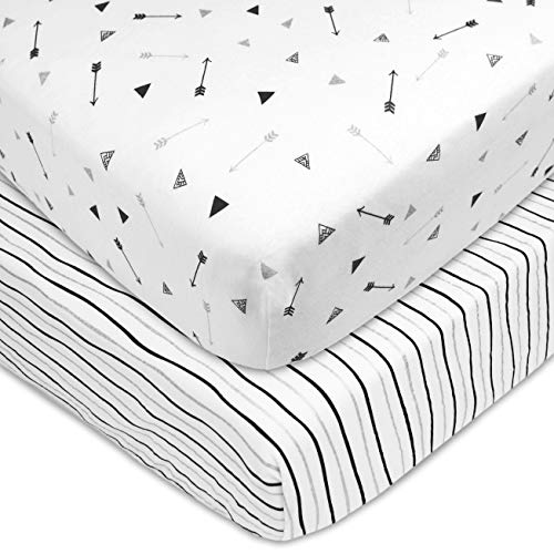 American Baby Company 2 Pack 100% Natural Cotton Fitted Crib Sheets 52" x 28" - Soft, Breathable, Hypoallergenic & Gentle Toddler Bed Sheets, Silver Black Arrow and Stripes, Neutral for Boys & Girls