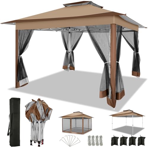 COBIZI 12x12 Pop up Gazebo on Clearance with Mosquito Netting, carpas para Patio Deals,Easy up Outdoor Canopy Tent with Portable Carrying Bag, Patio Gazebo for Garden Backyard & Lawn, Brown