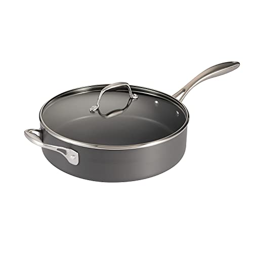 Tramontina Hard Anodized Non Stick 5.5-Quart Saute Pan with Glass Lid, Cooking Pan with Reinforced Nonstick Coating, Oven Safe