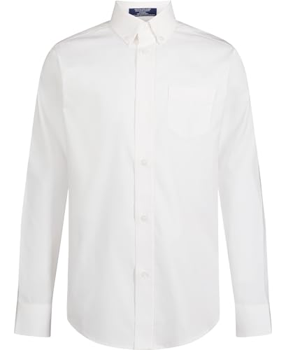 IZOD Boys' Long Sleeve Solid Button-Down Collared Oxford Shirt with Chest Pocket, Classic White