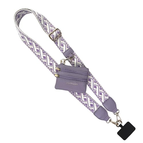 Save the Girls Original Clip and Go Phone Strap Pattern (XOXO - Lavender) - Crossbody Phone Strap Chain with Zipper Wallet Pouch – Phone Lanyard Zippered