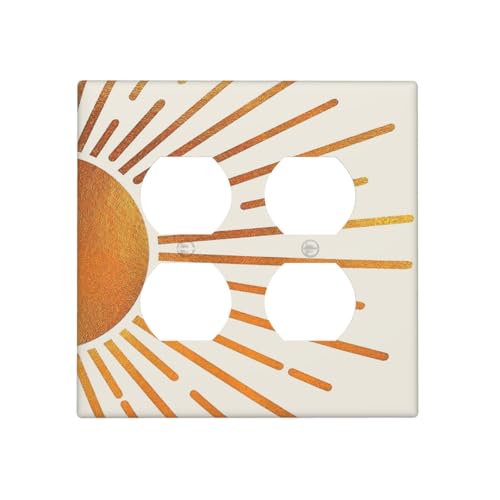 Spshian Decorative Outlet Covers Boho Gold Sun Mid Century Sunrise 2 Gang Wall Plate Double Duplex Receptacle Light Switch Plate Covers Jumbo Dual Electrical GFCI Switch Cover Plate