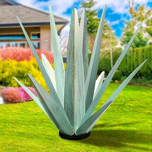 KODIBO Large Tequila Rustic Sculpture, Rustic Metal Agave Plants for Outdoor Patio Yard, Home Decor Hand Painted Metal Agave Garden Yard Statue, Outdoor Lawn Ornaments (Mint Green - L)