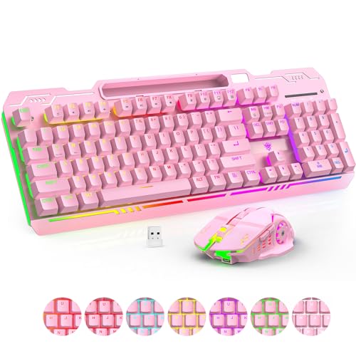 XISOGUU Wireless Gaming Keyboard and Mouse Combo, RGB Backlit Rechargeable 2000 mAh Battery, Mechanical Feel Anti-ghosting Keyboard + 6D 4800DPI Mice for PC Gamer