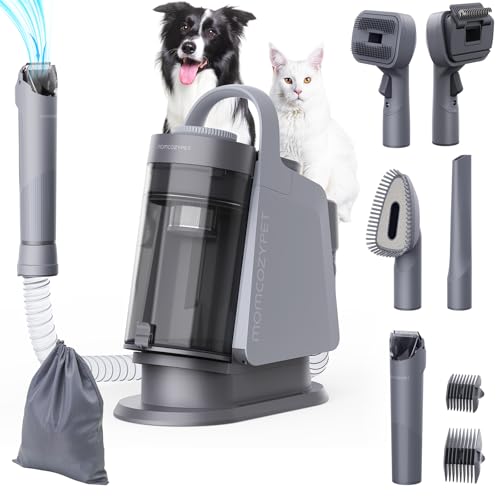 MomcozyPet Dog Grooming Kit, FurEase Dog Grooming Vacuum with Dog Clippers for Grooming, 13000Pa Powerful Dog Vacuum for Shedding Grooming with 5 Pet Grooming Tools (Iron Gray, 2.5 Liter Canister)