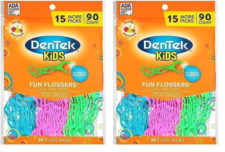 DenTek Kids Fun Flossers, Floss Picks, Removes Food & Plaque, 90 Count (Pack of 2)