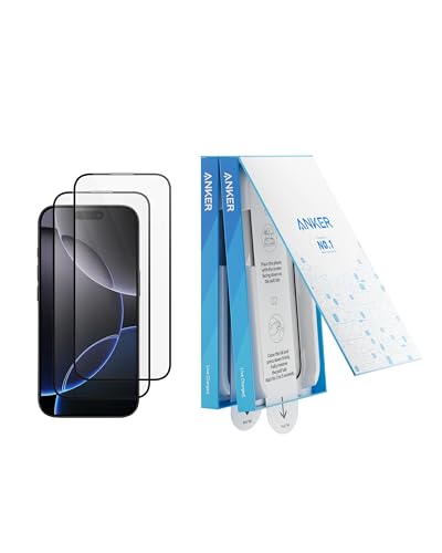 Anker Screen Protector, Bubble-and-Dust-Free iPhone HD Tempered Glass, Durable and Drop-Proof with 9H Hardness, Easy Installation Exclusively for iPhone 16 Pro Max 6.9-Inch (2-Pack)