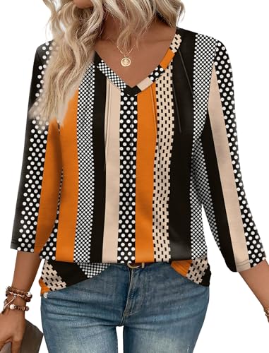 3/4 Sleeve Tops for Women V Neck Lightweight Blouses Business Casual Outfits Womens Fashion Summer Spring Beach Vacation Clothes L