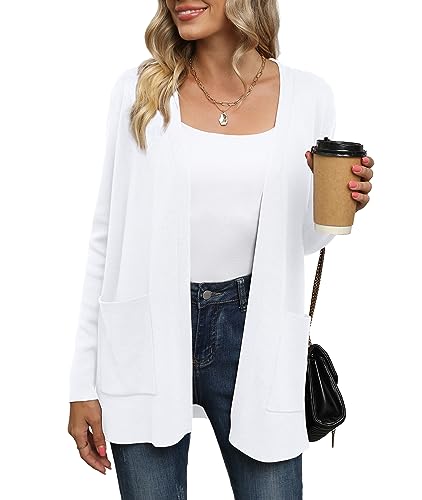 LILBETTER Women Long Sleeve Soft Basic Knit Cardigan Sweater with Pockets(White,XX-Large)