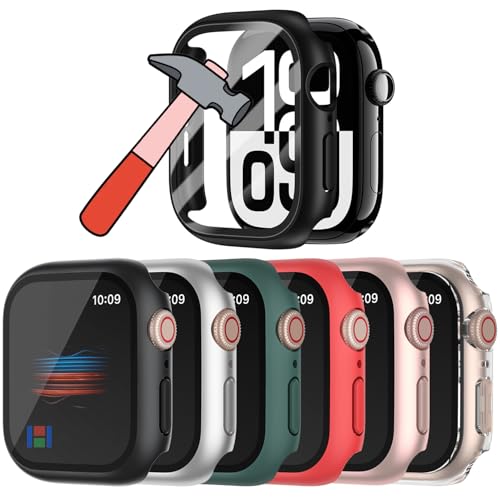 HANKN 6 Pack Hard Case with Button for Apple Watch Series 10 46mm Tempered Glass Screen Protector Case, Full Protective Shatterproof Matte Shell Cover Ultra-thin Iwatch Bumper Accessories, 46mm