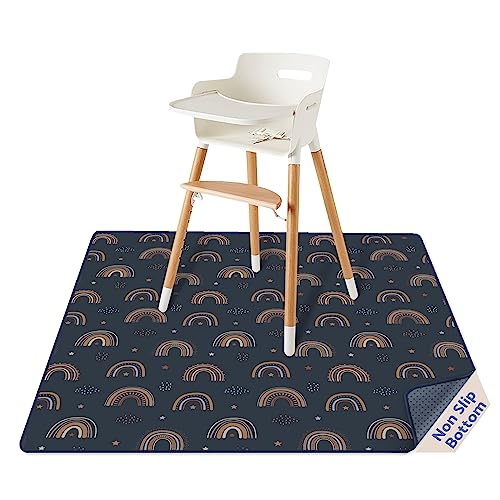 Blissful Diary Baby Splat Mat for Under High Chair, 50.4 x 50.4 Inch Wipeable Splash Mat, Waterproof and Washable, Anti-Slip Floor Protector, Retro Rainbow