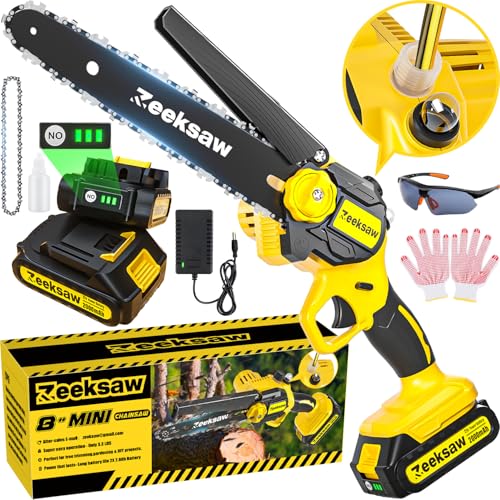 Mini Chain saw Cordless 8 inch Auto Oiler, Automatic Chain Tension, 21V MAX* Rechargeable Cordless Chainsaw with 2x2.0Ah Battery and Charger, Mini Chainsaw 8 inch Cordless Hand-Held Electric Chain Saw