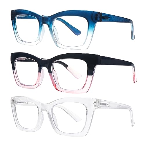 SIGVAN 3 Pack Oprah Style Reading Glasses for Women Men Blue Light Blocking Square Computer Readers with Spring Hinge (3 Mix-1, 1.75, multiplier_x)