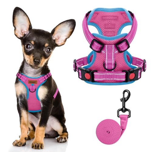 MIDOG No-Pull Dog Harness | Adjustable & Reflective Pet Harness Leash Set for Small Medium Large Dogs Walking, Training| No Choke, Front Clip, Soft Padded Vest with Easy Control Handle - Pink, XS
