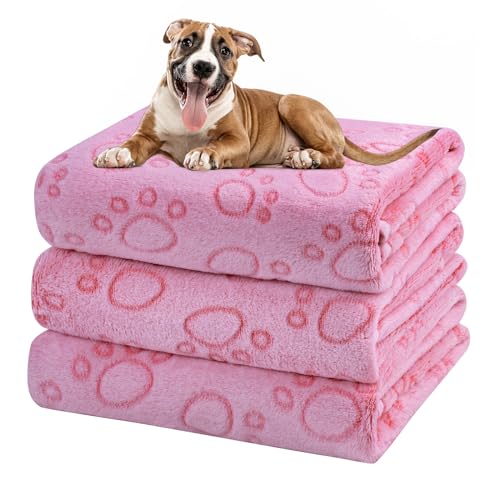 Dono 1 Pack 3 Dog Blankets, Soft Fluffy Fleece Pet Blanket Warm Sleep Mat Paw Print Design Puppy Kitten Throw Blankets Doggy Blanket for Dogs
