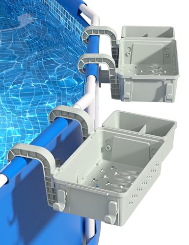SUMMERBUDDY 2 Sets Upgrade Poolside Storage Basket, Above Ground Pool Storage Basket with Pool Cup Holder, For Steel Round or Oval Frame Above Ground Pools, Fits 3 Inch or Less Top Rail