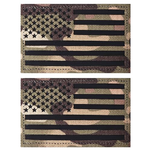 ZESION 2Pcs Reflective Camouflage American Flag Patches Set, Tactical US Flag Patches Full Embroidery Military Patch for Caps Bags Vests Military Uniform