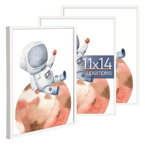 upsimples 11x14 Picture Frame Set of 3, Made of High Definition Glass for 11 x 14, Wall Display Thin Border Photo Frames for Home Décor, White