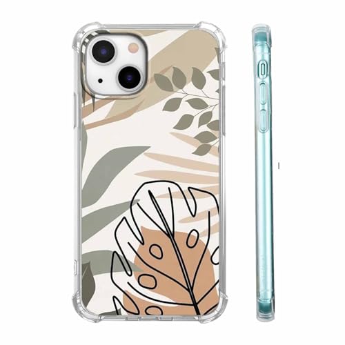 Hsondcn Case for iPhone 15 Plus with Green Leaves Design,Abstract Minimalist Plant Art Pattern,Soft TPU Bumper Phone Cover(15plus,Leaf)