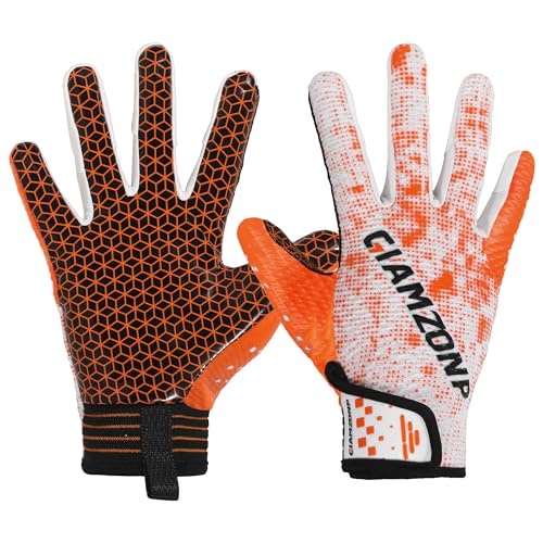 AIGEVTURE Youth Football Gloves Kids Sticky Receiver Gloves for Kids Orange and White X-Large
