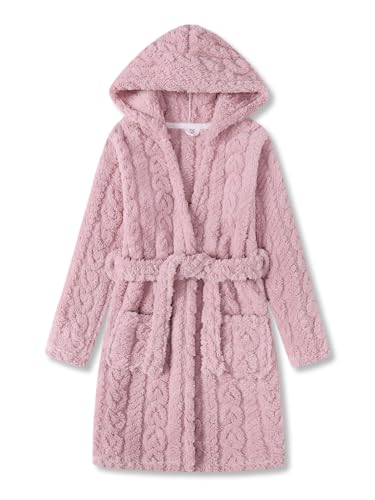Topgal Girls Fleece Bathrobe Winter Hooded Sleep Robe with Pockets Fuzzy Purple Heart Jacquard SleepRobe Size 14