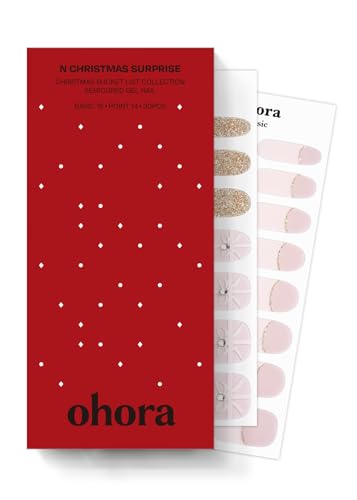 ohora Semi Cured Gel Nail Strips (N Christmas Surprise) - White/Nude, Works with Any UV/LED Lamps, Salon-Quality, Long Lasting, Easy to Apply & Remove - Includes 2 Prep Pads, Nail File & Wooden Stick