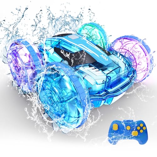 Tecnock Amphibious Remote Control Car Boat for Kids, 4WD RC Cars with Waterproof Remote, 2.4GHz RC Boat with LED Lights, 60 Minutes of Playtime, Water Pool Toys Gifts for Boys and Girls
