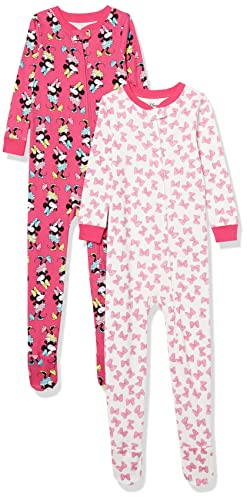 Amazon Essentials Disney Toddler Girls' Snug-Fit Cotton Pajamas, 100% Minnie - Footed Sleeper, 2T