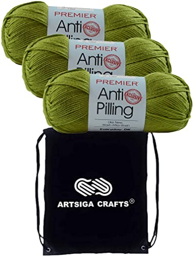 Premier Yarns Anti-Pilling Everyday DK Solids Clover 1107-68 (3-Skeins-Same Dye Lot) DK Light Worsted #3 Anti-Pilling Acrylic Yarn for Crocheting and Knitting with Project Bag