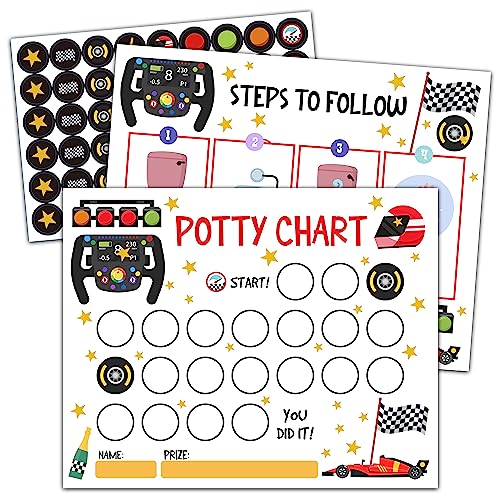 Racing Car Potty Trainning Sticker Chart for Toddlers Boys Girls, 20 Potty Training Chart with 432 Stickers & 1 Routine Card - B06