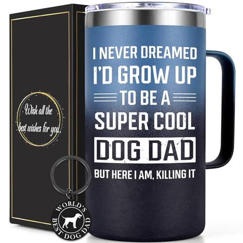 Lifecapido Dog Dad Gifts for Men, Dog Dad 20oz Insulated Coffee Mug with Keychain, Fathers Day Birthday Christmas Gifts for Men Pet Owner, Gradient